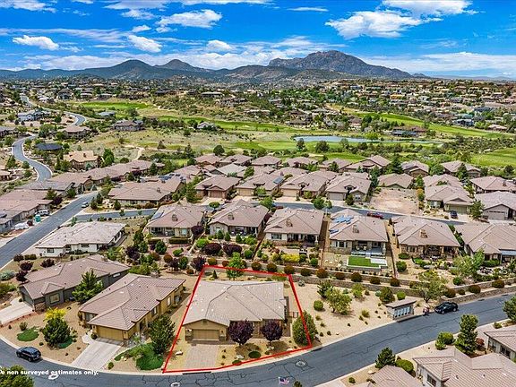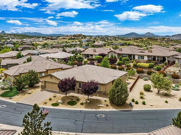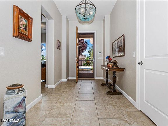$312/ sf in Creekside +++ Wonderful Opportunity to own one of the wider [.21AC] level homesites bordering common area [providing extra breathing space] in Creekside @ Prescott Lakes, a gated community w/in The Estates. An EZ walk to the Club, Dining, Pickleball, In-Out Pools, private Golf + This original Owner had Dorn Homes build an expanded version of the popular Spyglass plan in 2012, adding extra space in all the right places. Inviting Living Spaces both inside & out. Beautifully cared-for one story, 2378sf, 2 Bed [Primary + EnSuite] & Den [or possible Bed 3], 2.5 Bath, oversized 2 Car Garage, 24'x24' [584sf] w/epoxy floor, H2O Whole House Water Treatment System, central vac w/equipment + lots of custom cabinetry +++ Tile floor thru-out w/carpet in 2 Beds [replaced 2-24] & EZ care LPV