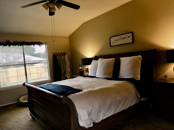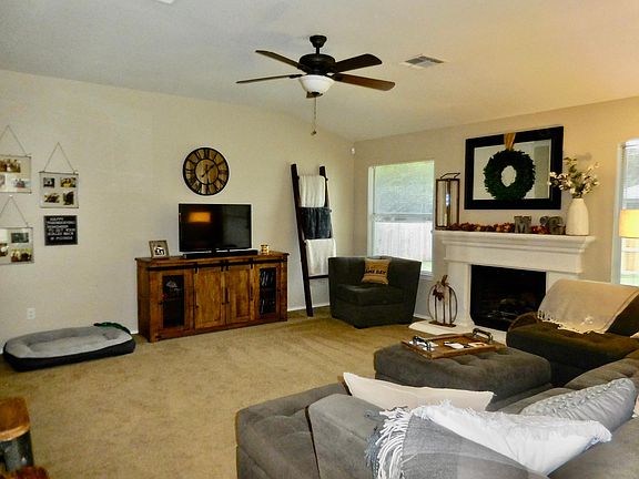 Super cute single story home, lots of windows make it light & bright. Fireplace, large private back yard, covered patio. Stainless steel appliances, to include refrigerator. Double sinks in master, brand new walk in master shower, walk in closet. Spacious bedrooms, separate utility room.$200 of pet deposit non refundable. $200 of pet deposit non refundable