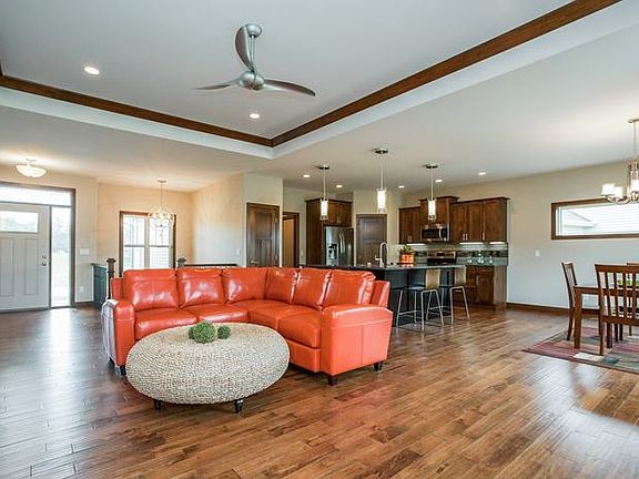 If you are looking for new construction, pristine craftsmanship and stunning upgrades then you have found your home. From the impressive front door of this open concept, you will marvel at the pecan hand scraped wood flooring. Unique upgraded cabinetry in a modern yet classic two toned stain in the kitchen topped off with nickel hardware and gleaming northern pike granite. Formal dining space is large enough to host the largest of family functions. You will enjoy the private master retreat, upgraded with