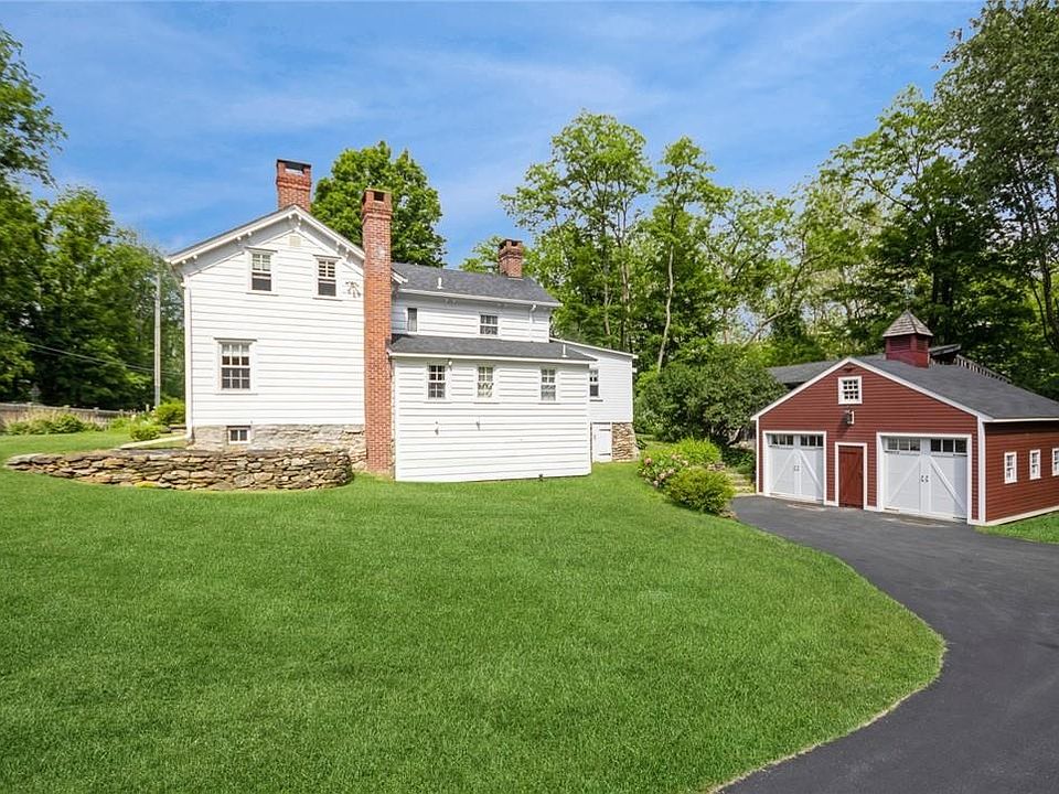Charming 1796 Farmhouse with an abundance of storage across two detached structures and complimented by beautiful mature landscaping. This meticulously maintained 1796 farmhouse offers a perfect blend of historical charm and modern convenience. Nestled on a stunning property with beautiful gardens and hardscaping, this home is ideal for work from home enthusiasts, small business owners, hobbyists, car enthusiasts, and more. The exterior features: Old-growth wood siding, sourced from centuries-old forests, known for its density and resistance to decay. Colonial period lighting, both exterior and interior. Original glass transom over the front door Period hardware on solid wood interior doors. Interior Features include two fireplaces. Living room fireplace with a recently relined chimney and a stunning dining room fireplace fully rebuilt and featuring an operational bee hive bake oven. Wide board flooring throughout. The chefs kitchen includes a Wolf propane gas 6-burner stove with dual ovens, Bosch dishwasher, Soft-close drawers and cabinet doors, and Dutch door leading to the laundry room. Detached exterior structures include a Two-level, 1,200 square foot garage accommodating up to 4 vehicles along with an additional two-car garage. This property exudes charm and history while offering ample storage and versatile spaces for a variety of uses. Don't miss the opportunity to own a piece of history with all the conveniences of modern living. Additional Information: Amenities:Storage,HeatingFuel:Oil Above Ground,ParkingFeatures:4+ Car Detached,