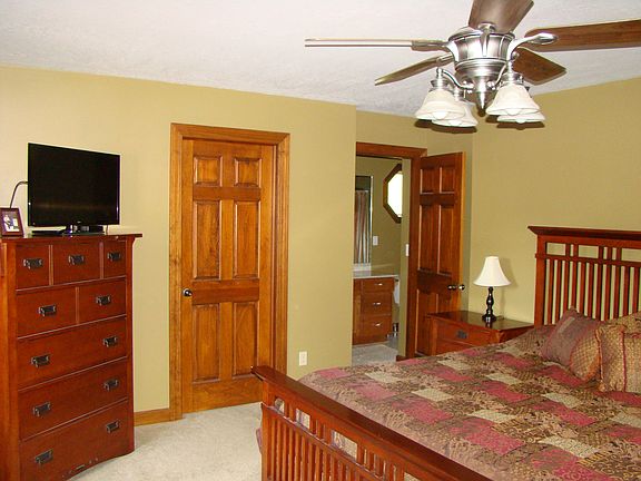 This meticulously maintained ranch features a family friendly living room, spacious bedrooms, and large master suite with custom walk-in closet. The grand kitchen with eat in dining area is perfect for gatherings. Separate laundry room provides discreet convenience. Huge 3 tier deck encompasses an above ground pool along with a fire pit for those incredible Indiana summer and fall nights. Pool has a center drain for easy maintenance and gas heater to extend your swimming season. Beautiful vinyl fence helps to secure privacy for your entertainment oasis. A must see!!