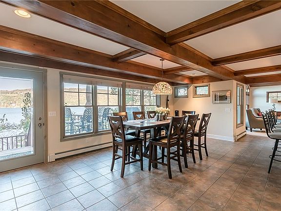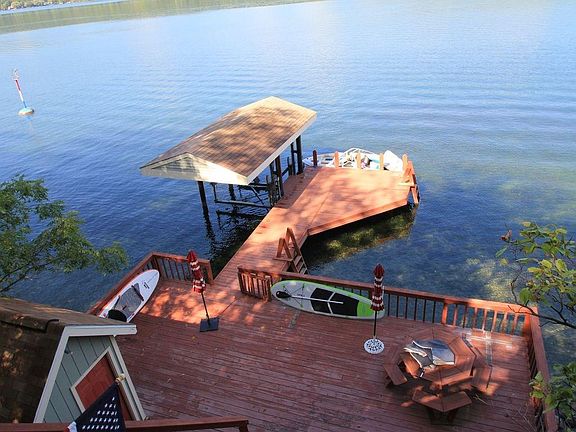 Stunning all year around lakefront home! 111' of lakefront w/ shale beach, a covered permanent boat hoist, deck house to store lake toys & frig for drinks you'll enjoy on your large permanent dock AND deck just stained in 2018! Loaded w/ the finer touches you expect! Lake views galore & fully furnished including deck furniture & lake toys! See list of items included! Meticulously maintained & an entertainer's delight inside & out! Large open kitchen that will not disappoint you! Large fireplaced family room w/ vaulted ceiling! Large living room too! Well appointed bathrooms! Some heated floors! Security system, Central vacuum, & a propane fed grill! Complete water filtration system & water softener! Reverse osmosis in bar sink! Updates: Retaining wall, driveway, air conditioning & 50 gallon hot water heater '17, Air conditioning '15 & SO MUCH MORE! See 3D virtual reality walk thru tour of this stunning lake home at my.matterport.com/show/?m=FE97mPmzWix