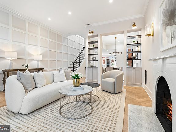 This stunning 2020 Dilan Homes development in the heart of Logan Circle has been impeccably maintained with additional upgrades made by the Sellers, including soundproof windows on front of home (Primary suite and living room), custom shades by Stoneside (several with remote/motorized and blackout in Primary), and recessed lighting. This 3-story, semi-detached brick home boasts 10.5 foot ceilings, white oak herringbone floors, Viking appliances, crown molding and wood-burning fireplaces. The Primary Suite has a sitting area, a pass-through closet with built-ins, and a dual-vanity bathroom. The other amply sized bedrooms on the upper level share a spacious hallway bathroom. The Lower Level has a large recreational space, a kitchenette, 4th bedroom, full bathroom and front and rear egress. The back yard has a deck, flexible flagstone parking pad or patio and a secure roll-top door plus a separate gate. Prime location on S between 12th and 13th, with The Coffee Bar on the block!