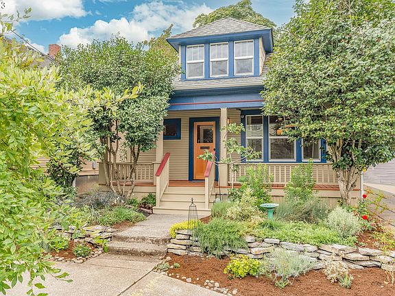 Welcome to this soulful Sunnyside haven, nestled perfectly between the vibrant Hawthorne and Belmont streets. This 1908 bungalow radiates with character and charm while boasting a rich history that intertwines seamlessly with its original craftsman details. As you step from the covered front porch into the entryway, you'll be embraced by a warm ambiance and inviting living spaces that foster a sense of connection. The artful kitchen blends vintage and modern, complete with a Viking range, and will inspire all of your culinary creations. French doors gracefully extend off the kitchen creating a harmonious blend of indoor-outdoor living and a place to enjoy alfresco dining as you overlook the newly transformed backyard oasis. When you are ready to unwind, the spacious main floor primary bedroom (originally 2 bedrooms) serves as your tranquil sanctuary. Upstairs offers a light & bright 2nd bedroom and versatile flex space - think home office, cozy reading nook or play area. This bungalow isn't just a home; it's a canvas for your artistic soul and a palate for your creative expression. [Home Energy Score = 3. HES Report at https://rpt.greenbuildingregistry.com/hes/OR10108080]