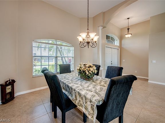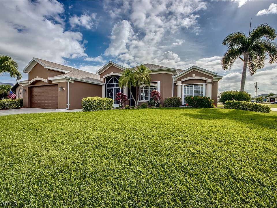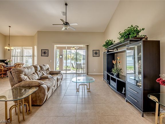 What a LOCATION!!! BEAUTIFUL & SPACIOUS 2200+sq. ft. home with SOARING ceilings and wide open, GREAT ROOM floor plan that is sure to IMPRESS! Concerned about insurance rates? This home is located in an "X" Flood zone meaning Flood insurance may not be necessary. The roof was replaced in December of 2022 and all NEW accordion shutters were installed in 2023, significantly lowering insurance costs. This STATELY looking home with an appealing architectural design will capture your attention each time you pull in the driveway. *DOUBLE DOOR screened entry-way *OVERSIZED DEEP GARAGE (25') *8' Sliders in the living room and master bedroom. *Each bedroom has considerable size. *Guest bathroom also serves as a pool bath. *Kitchen appliances are all Whirlpool stainless steal, 42" raised panel cabinets, massive walk-in pantry, and plenty of seating at the breakfast bar. Sitting on an oversized corner lot, this home is surrounded by LUSH, GREEN grass. The backyard provides a wonderful spot to relax and plenty of room for a new pool. City utility assessments are all PAID IN FULL. Only minutes to an abundance of restaurants and shopping along the Pine Island Corridor. This is definitely one you'll not want to miss!