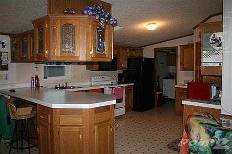 There is room for a large family or plenty of guests in this 28x76 4 bedroom 2 bath home. In addition to the living room, this home has a family room with gas fireplace for any chilly night. Large windows and ceiling fans help move the air through the space. All appliances are included to begin your life in your new home. This is a very affordable home with a huge amount of space all on one level. Enjoy the tranquil back yard on the 18x15 deck as you view the trees and the wildlife on the hill. New water heater, new heat tape, new shingles, some new siding, new skylights in the bathrooms and kitchen. There is a lot of storage including cupboard space and a walk in pantry in the kitchen. Storage shed in the back is included.