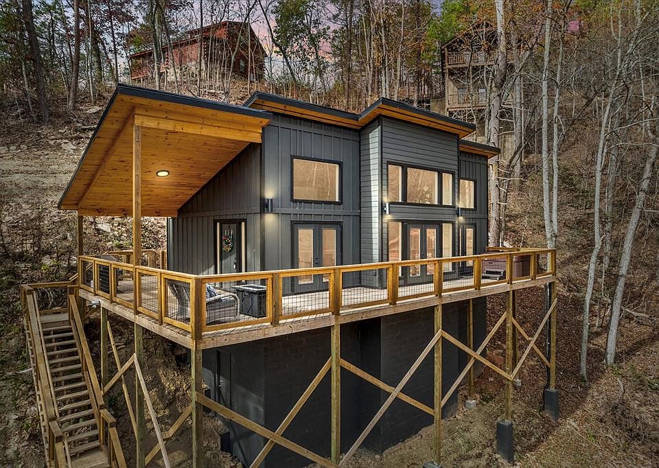 "Along The Tree Top" is a brand new, modern 1 bedroom cabin with Hot Tub, Arcade Game and beautiful decor located right in between Pigeon Forge and Gatlinburg! Ideal location right between Pigeon Forge and Gatlinburg! When you are at this cabin you will feel like you are staying in a treehouse within the canopy of the trees! Nestled Along The Tree Top is a brand new, modern, romantic cabin with king bed in the main floor master bedroom and pullout queen sofa in the living room. Feel one with nature while enjoying all modern amenities! Gas Firplace inside and Gas Firepit on the Deck, Hot Tub, Arcade, and modern finishes throughout make this the perfect turnkey rental property for your portfolio! This property completed construction at the end of 2022 and has generated great rental income through Summit Cabin Rentals.