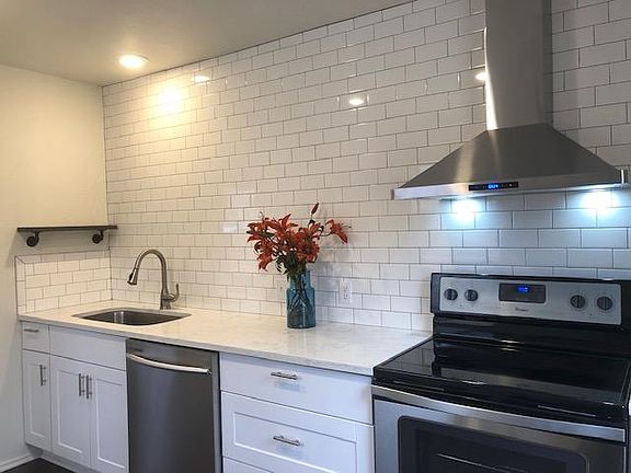 Stainless steel appliancesQuartz countersNewly renovated kitchenLarge deck with pergolaCozy front porchGorgeous white subway tiles