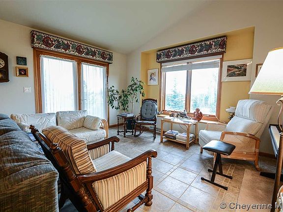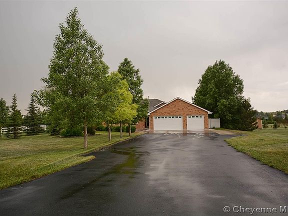 Very nice Hayes Construction built home located only minutes North of Cheyenne. This 3 bedroom , 2 1/2 bath home is situated on a 2.41 acre landscaped lot with mature trees. Wonderfully inviting, this home features vaulted ceiling, tiled floors, wood trim and doors, gas log fireplace, central a/c and 3 car detached garage. Additionally there is a main floor office.