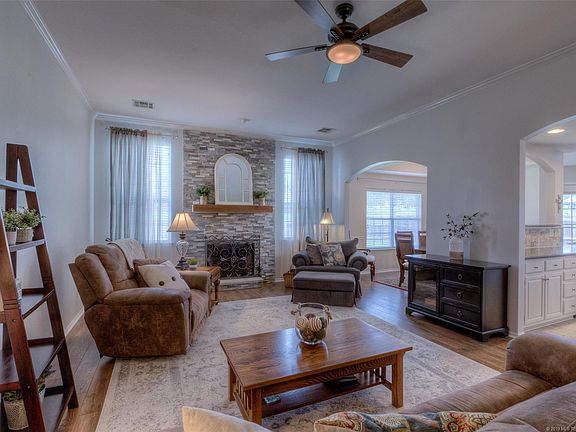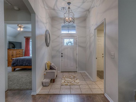 Charming and beautifully updated 1 story home on corner, greenbelt lot in Jenks! New interior and exterior paint; new laminate hardwood floors in main living & new carpet in all bedrooms; floor to ceiling rock fireplace with custom mantle and hearth; SS appliances, 3cm quartz countertops and updated backsplash, hardware, & fixtures! Brand new roof with Timberline shingles & 30 year transferable warranty!