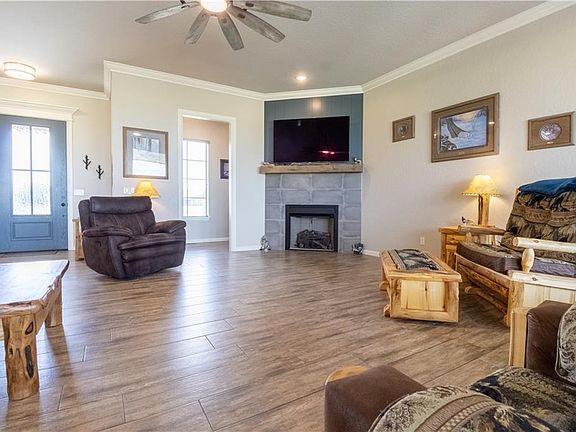 NEWCASTLE SCHOOLS AND 4 MILES TO I-44. This better than new HILL'S Land & Construction home is stunning & has an abundance of extras.The open living & kitchen concept is very spacious with 12' ceilings, natural light from the bank of windows which also have black-out custom shades, a gas log corner fireplace and a tremendous kitchen with 8ft island wide enough for stools for visitors while cooking, tons of counter space and cabinets, lg. walk-in pantry with electric plugs, porcelain farm sink, 5 burner gas stove & a large eating area. The primary bedroom with spa like ensuite has a seasonal closet which opens to the large laundry room, a giant walk in shower and soaking tub. The FLEX room is being used as a 4h bedroom & could easily be used as an additional living space, office or media room. The 2nd & 3rd bedrooms have large closets with ceiling fans and are in their own wing of the house. THE HALLWAYS ARE ALL WIDER & THE DOORWAYS ARE 3 FEET AND PRIMARY SUITE DOORS ARE 3O. HALL BATH DOOR IS 2.8 SO THIS HOME WILL EASILY ACCOMMODATE A WHEELCHAIR OR WALKER IF NEEDED. The flooring is high quality wood grain tile in the common areas and baths and carpet in the bedrooms. Enjoy the extended back patio as you watch the Oklahoma sunsets. The 3 car garage is oversized and has a utility closet & storage closet under the walk stairs to the attic. All appliances to remain with the home. Sitting on just under 1 acre mol and close to all major highways for easy commuting to TAFB, Will Rogers Airport, FAA, downtown Okc, Bricktown, Norman, OU, Moore & Edmond. High speed internet is provided by Pioneer.