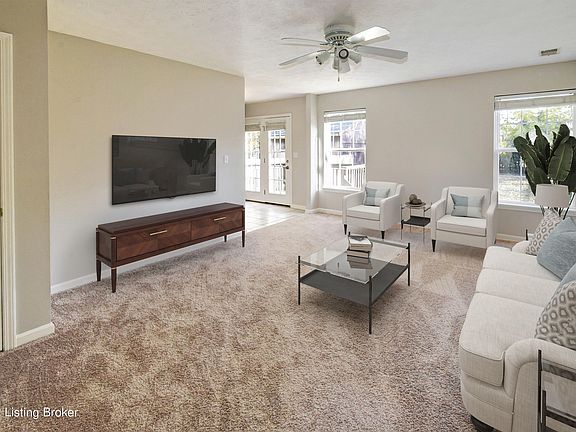 Sweetly nestled into the community of Eastview in Lyndon, this charming 3 Bedroom, 2.5 Bath Home is all dressed up and waiting for you to move right in! Homes in this great location don't come on the market very often, so now is your chance! Walk up the sidewalk to the covered front porch, enter into the Foyer, and ahead is the enormous Family Room with new carpet and windows overlooking the back yard. The Kitchen features a new Stainless-Steel Whirlpool Range, Dishwasher and Microwave and has a large Dining Area with French Doors leading to the back Deck that has been newly stained. Off the Kitchen is the Powder Room, as well as a large Pantry and the entrance to the 2-Car Garage. Upstairs you will find the Primary Bedroom Suite with a soaring Vaulted Ceiling, a beautiful Palladium Window that allows lots of natural light, brand new carpet, and a ceiling fan with light. The Primary Bath has a large vanity and a tub/shower with ceramic tile floors, and there is an oversized walk-in closet too! There are two more big Bedrooms upstairs-both with double closets and new carpet. The Guest Full Bath has ceramic tile floors and a large vanity. At the top of the stairs is a convenient linen closet for added storage, as well as the Laundry and Utilities in a room of their own that separates the Primary from the other Bedrooms. Going outside to the back, you will find a level yard that appears much larger than the PVA says it is, and it's surrounded by a privacy fence. The entire interior of the home has been recently painted, the exterior has been pressure washed and the landscaping has been spruced up. So, all you need to do is bring your furniture and start living the good life! Seize this opportunity now and celebrate the holidays in your New Home!