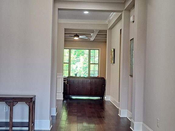 From the covered front porch, a soaring foyer welcomes you into a long and wide hallway that can become your art gallery with your favorite wall hangings! Open floor plan with hardwood floors throughout the main, except in the baths which are tile-floored. Granite countertops, stainless appliances, and elegant cabinetry in the kitchen. Master and guest suites both on the main level. Double walk-in closets in master suite. Snug elegant baths, showers, and vanities. The main floor boasts almost 2400 sqft of living area and features family room, formal dining room, kitchen & nook, master & guest suites, 3rd bedroom, 2 full baths, and a half bath. Upper level covers 745 sqft of living area and features 4th and 5th bedrooms, a huge loft, a giant storage room, and 1 full bath. Huge detached wooden deck in the backyard which ends in a scenic woodland with dense thriving trees. Sprinkler system for the lawn on separate water meter. Landlord takes care of the yard work so you can sit back, relax and enjoy your spare time!