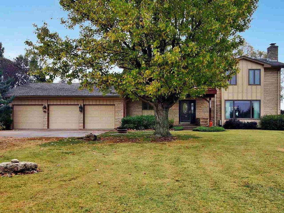 Affectionately known as Bluebonnet Acres, this property has it all. 10.7 well-kept and maintained acres, with a barn, riding arena, and pond as well as a three-car attached garage with an additional two-car garage between the house and the barn. The kitchen is the center of the main floor providing access to formal dining and the family room. The family room provides immediate access to the back yard. Additionally, you will find a large living room and an office/bedroom. The master bedroom features a sunroom for early morning coffee on the east and a deck on the west providing the most beautiful sunsets you will see in Kansas. In addition to the master, you will find three spacious bedrooms upstairs as well as another full bath. The laundry room is large and has a great deal of storage and workspace. The basement provides plenty of storage as well as room for creating additional entertainment/family space. Of interest.the mantel above the stone fireplace was taken from a house built during the Civil War and chosen specifically for this home.