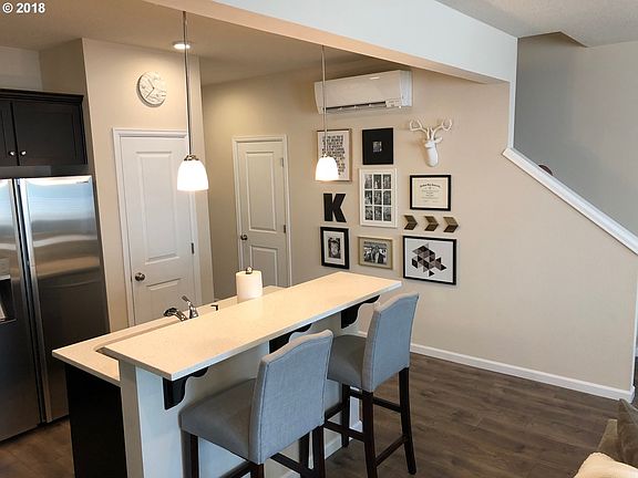 OPEN HOUSE Sunday 8/12/18 Noon to 2:00PM! Beautiful Townhome at River's Edge with many Upgrades: Wide planked laminate, Kitchen Quartz counters, Tile backsplash, SS GE Range & Microwave, Center Island & Pantry. Master Suite Bath w/Quartz counter & Tile flooring. Ductless Heatpump & Tankless H2O Heater. Nice Laundry Room. Attached Garage. Fenced Backyard & Patio. Walking Trails & Tualatin River nearby. Backs to Wetlands.