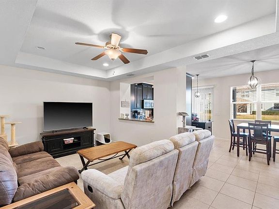 Beautiful home in a very desirable locality in Lakewood Ranch, Florida. This cozy and spacious 1670 sq. ft home with 3 bedrooms, 2 full baths, a powder room, and 2 car garage is located on a well-maintained lot with the lanai facing a beautiful lake. The home features tile flooring in the kitchen, dining, and living area with ample space for lounging or entertaining guests. The kitchen has all stainless steel appliances, stone countertops, and dark wood cabinets. The kitchen leads the way to the covered screened-in lanai, which often has views of different kinds of birds visiting and a serene natural landscape. A spacious bedroom, a large walk-in closet, an en-suite bathroom with twin vanities, and a separate shower make up the master suite. The other two generously sized bedrooms share a full bathroom outside. Located in the heart of Lakewood Ranch, Florida, it has close proximity to the marketplace, top-rated schools, shopping, and dining places. This could be your new home with access to a stunning pool in the community to cool off in the summer heat with your kids and family, a covered cabana, and an outdoor grilling area perfect for pool parties and hosting friends. The community also offers a gym facility nearby the pool.