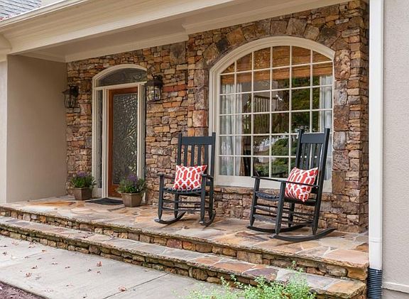 - Exterior features: Stone, Wood