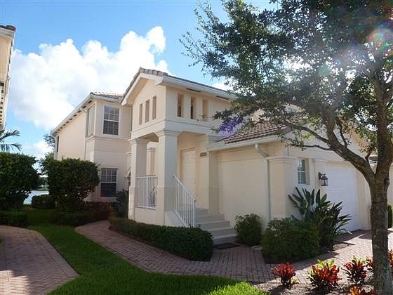 NEED A VIEW? Enjoy an expansive lake view from the master suite, living room and breakfast nook of this 2nd floor unit in the gated Mayfair development. Neutral colors. 3 bedrooms, 2 full baths. 1 car garage. All tiled main living areas, carpeted bedrooms. Granite kitchen counters, breakfast bar, stainless appliances. Screened patio overlooking Lake Wellington.