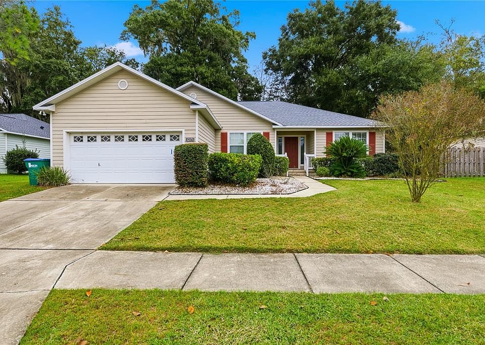 Looking for a home you can make your own? This spacious property in Savannah Station is one of the rare larger floor plans, offering 1,730 heated and cooled square feet, a two-car garage, and a brand-new roof (2024)! With solid bones and great flow, this home is ready for your personal touch and cosmetic updates to bring it to its full potential. As you enter, you’re welcomed by cathedral ceilings and a bright, open living area with space for formal dining. To the right, a hallway leads to two comfortable guest bedrooms and a full bath with a tub/shower combo. The kitchen overlooks the living room and includes a cozy breakfast nook, perfect for casual meals or morning coffee. A laundry closet is conveniently located near the primary suite, which features an ensuite bath and walk-in closet ready for your finishing touches. Step outside to enjoy the fully fenced backyard and screened-in porch, ideal for relaxing or entertaining. Located in the welcoming community of Savannah Station in Alachua, you’ll enjoy quiet streets, sidewalks, and a neighborhood park with fitness stations and playground. Just minutes from historic downtown Alachua, I-75, and an easy drive to Gainesville, it offers small-town charm with city convenience and a low HOA that keeps living affordable.