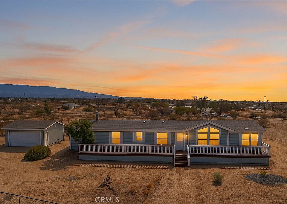 Situated on a fully fenced 98,881 sqft lot (over 2.27 acres), this property is ideal for outdoor living. It includes mature fruit trees, an area to create your own garden, and ample space for RV parking, off-road toys, or future expansion. The large front deck, stretching nearly the entire length of the home, is the perfect spot to take in the unforgettable sunrises and sunsets the High Desert is known for.