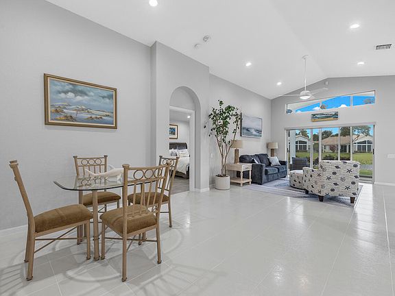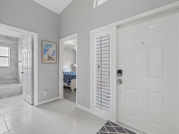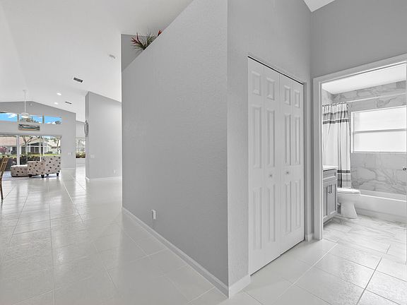 Step into your FULLY renovated modern haven! This home boasts three bedrooms and two bathrooms, with every corner upgraded. The kitchen is a chef's paradise, featuring quartz countertops, a spacious island, and sleek cabinetry. Key updates include NEW ROOF, A/C, and water heater (2023). Recently painted walls complement the formal living room and voluminous ceilings. The garage showcases epoxy floors and a hurricane-rated door for added durability. Both bathrooms offer porcelain tile floors and modern vanities. Enjoy your morning coffee with breathtaking lake views from the Florida room. With new electrical wiring, electric blinds, ceiling fans, accordion shutters, LED high hats, this home is as functional as it is beautiful. Lakeridge Greens is a gated 55+ community nestled within the estates of Westchester Country Club. LOW HOA. Recently renovated clubhouse featuring social events, pickleball/tennis courts, fitness center, sparkling pool and spa.