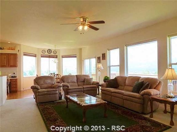Panoramic views from this beautiful ranch style home with walkout basement. Light, bright open floorplan. Wide doorsthroughought. Bullnose corners. Lots of architectural designs. 5-piece master bath. Formal dining room can be used as formal living room or office. Large kitchen with breakfast bar and large eating space with windows looking out to Pikes Peak and Mountain views.