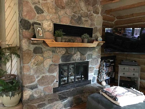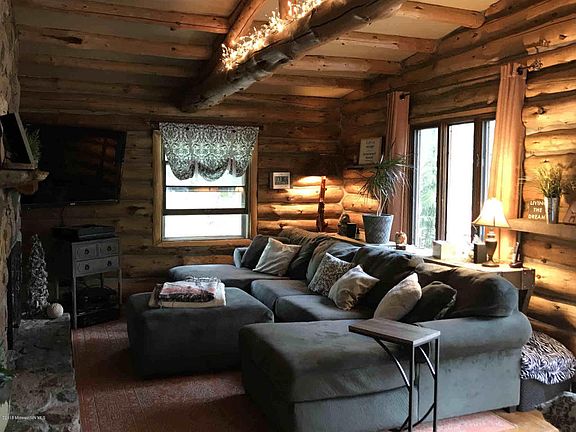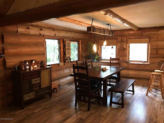 Magnificent 3+ bedroom, 2 bath log home, nestled in the pines on 43+ acres, surrounded by state land and across the road from Portage Lake. New flooring throughout main floor, new kitchen appliances, loft with 2 bedrooms, exercise room, large deck, patio and fire pit area and shuffleboard! Partially finished basement, very dry and cool, could support a family room and another bedroom, egress window framed in exercise room. Great proximity to town & trails, just too many features to list!