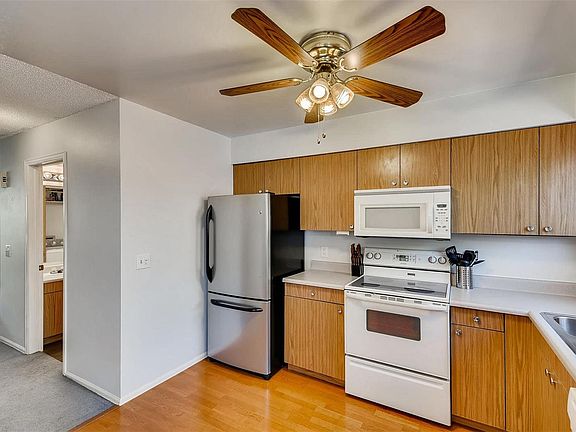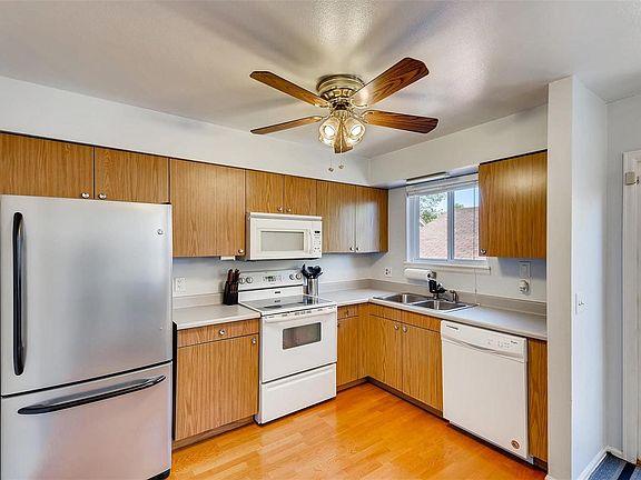Welcome home to this cute and cozy move-in ready town home. This two bedroom end unit is conveniently located within walking distance of shops, restaurants, public transportation and I-25. This well maintained home boasts new paint throughout and includes the refrigerator, stove, microwave oven, and dishwasher. Sliding door off the kitchen (with internal blinds) opens to a light and airy backyard with a motorized retractable awning to enjoy shady summer days!