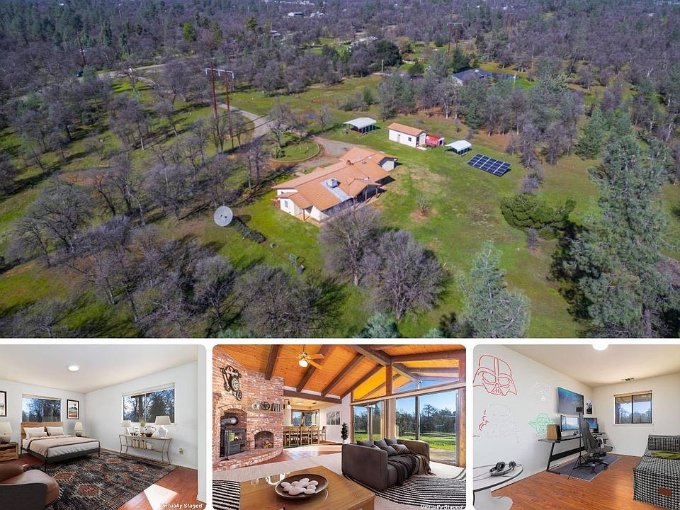 Rare find 8.25 acres country property is a one story custom built home, surrounded by the great greenery. Property features Owned solar, 3 beds 2.5 baths, open kitchen concept, Cathedral Ceiling, wood burning fireplace, spacious living room with 4-panel sliding glass patio doors, and plenty of natural light flow throughout the home's open airy layout. Private entry gate, 2 extra-large covered carports for RV parking and boat storage, good size workshop and storage shed, covered patio for outdoor family entertainments. What's more? Minutes away from college and all local amenities. Bring all your toys and get the dreams started by bring your hammer and vision.