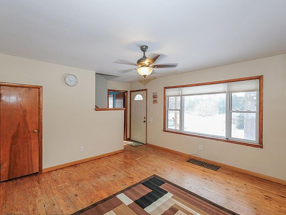 Country home with a very peaceful setting, acreage and lots of privacy. Country home has 3 bedrooms a open living room with a cozy fireplace. Living room flows easily into the dining area and both are accented by beautiful knotty pine flooring. New bright remodeled bath. A large kitchen with plenty of knotty pine cabinets and counter space. Upstairs are two bedrooms with knotty pine flooring and new paint. Main floor living with lower bedroom and main floor laundry. A spacious four season porch off the garage. Downstairs is a office and mechanical, storage room. Home has all new paint, carpet and newer windows!! Outside is a lean too for firewood storage and a amazing tree fort. Better hurry this home will not last.