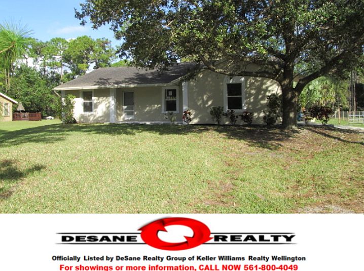 Call us now for more information 561-800-4049 ~ 3 Bedroom + Office/Den, 2 Bath, Home on .58 Acres! Fresh Paint! This Beautiful home features a Large Open Living Area with the Living Room open to the Dining Area and the Kitchen with large Breakfast Bar! The Bedrooms are set up in a Split Floor Plan with the Two Secondary Bedrooms on one side of the home and the Master Bedroom on the other along with the Office/Den. There is also a large Screen Enclosed Patio perfect for Entertaining! This is One Home that You Have See! Don’t Wait! Go See It Today!