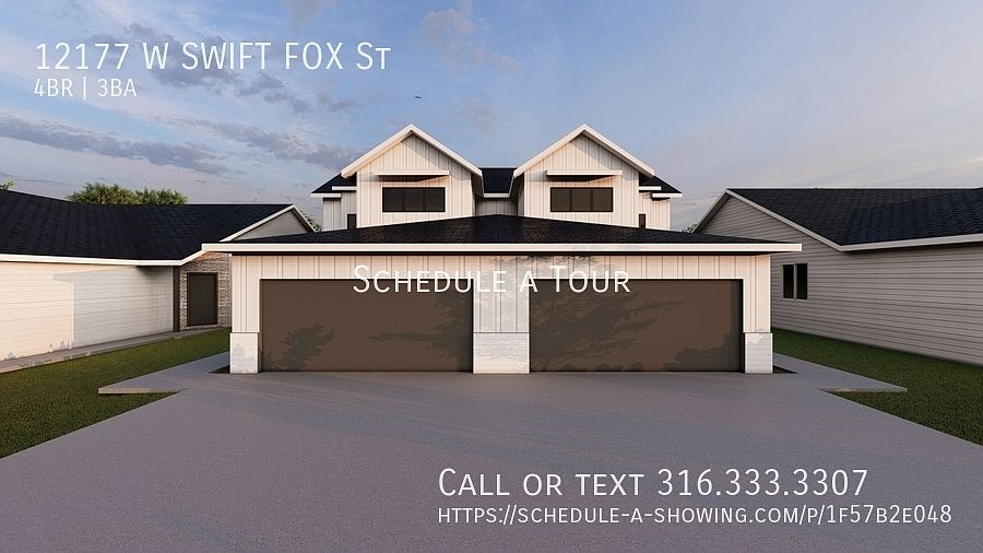 MOVE IN DATES FALL 2024 AND SPRING/SUMMER 2025! Beautiful and Modern Maggie Plan with 4 bedrooms, 3 full bathrooms and 2 car attached garage, located in Fox Creek Subdivision in Maize School District near 37th & 119th close to New Market Square. The home features quartz countertops, tile backsplash, luxury vinyl flooring, and neutral finishes. Kitchen appliances excluding refrigerator are provided. Tenant pays all utilities, HOA is responsible for mowing and the sprinkler system. Security deposit equal to one months rent. Maximum 2 pets are allowed with pet deposit equal to 1/2 one month rent and $25/pet monthly pet fee. All adults occupying the property must complete an application. Applications are processed on a first come first serve basis, and will not be processed until they are fully completed. At least one year rental/ownership history with reference is required, 3x's gross income to monthly rent ratio, credit and background review. Co-signer may be required if one or more of the above requirements are not met. Other floor plans available that are currently under construction.