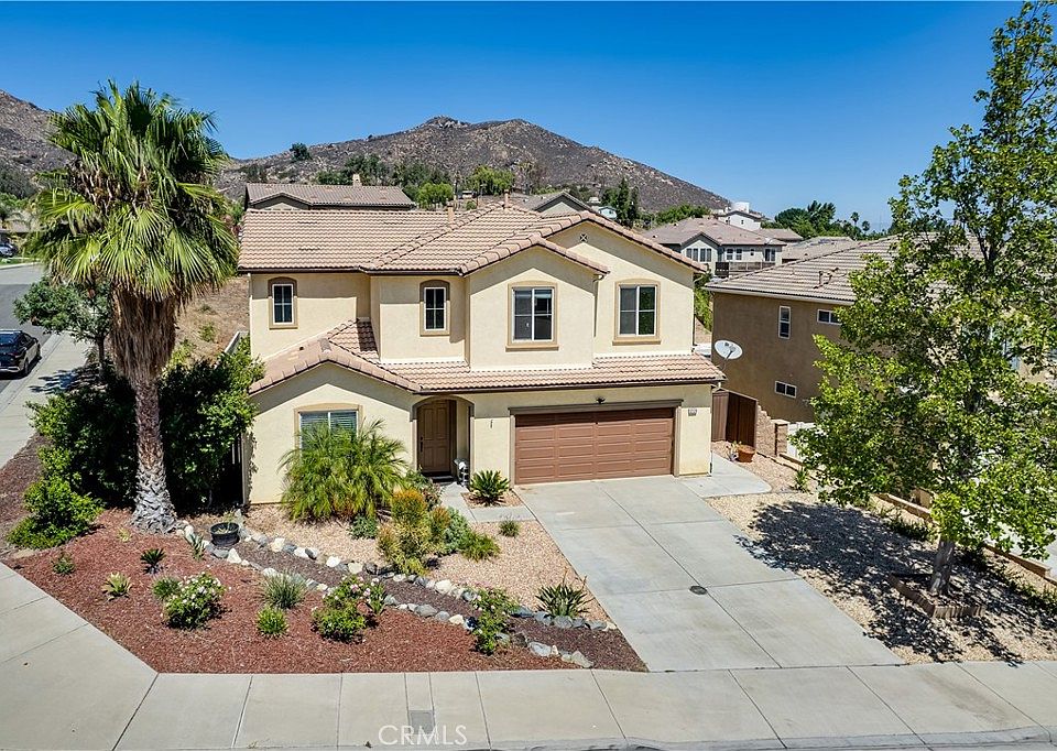 Move-in Ready! Large Lot! Hidden within the scenic hills of La Sierra, this beautiful 4 bedroom, large corner-lot property, is located on a lovely cul-de-sac with views of rolling hills and city lights. This home offers an open concept floorplan with high ceilings, recessed lighting, a kitchen island, quartz kitchen counter-tops, a gas fireplace in the great room, a den/flex room, master bedroom with a walk-in closet, dual sinks in master and hall bath, upstairs laundry room with sink, 3-car tandem garage and much more! This lot is just under a quarter of an acre and features a large patio cover with plenty of room for gatherings and potential for a pool in the future. This Riverside home borders the city's edge, where Corona Hills begins. Close by to plenty of local shopping, restaurants, schools, parks, and easy freeway access. ***Low Tax Rate of 1.17%, annual direct assessment fee of $73.42 and Low HOA of $77!!!*** Riverside's best kept secret. You won't find another one like it.