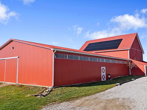 Spectacular Quaint home on 5 acres. Perfect for the gentleman farmer. Home was completely remodeled in 2021 Wonderful kitchen with stainless steel appliances Hardwood floors thruout. Large family room , Den with bar and place for a wood burner. Large dry unfinished basement. Three car garage, large deck and two front porch. Fenced field for animals indoor arena for riding or storage. Five stalls in the barn with wonderful loft area. Solar powered so low utility bills. propane available and Kinetico water filtration system