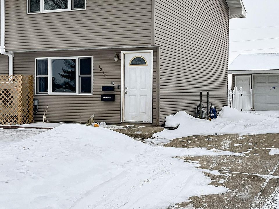 Great two-story twin home featuring three bedrooms on the upper level and no backyard neighbors for added privacy. Enjoy a nice outdoor patio area, durable steel siding, and a kitchen accented with a tile backsplash. The oversized single garage offers extra storage, all set within a well-established neighborhood.