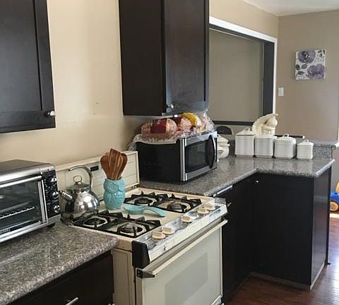 If you're in the market for a fantastic first-time buyer home then you're going to want to book an appointment today. This Delano charmer has upgraded dark wood flooring throughout the living room, kitchen, bathroom, and bedrooms. Upgraded granite counter tops in the kitchen that flow gorgeously with the dark cherry cabinets and gas stove and oven for those great get together's. The bathroom has a fully remodeled look with a beautiful back splash. The layout of the home is perfect for a traditional feel. Do you need room for cars? The driveway has room for it all and it leads up to a detached garage for all your vehicles. Spend time in the wide open back yard and get ready for that season get together's.