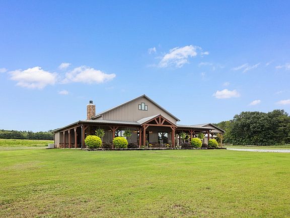Discover the ultimate Barndominium retreat , sitting on approximately 38 scenic acres. This stunning home features an open floor plan adorned with a cozy wood-burning fireplace, cathedral ceilings, perfect for gatherings. Enjoy your large kitchen with lots of cabinet space and an Island bar. The master bedroom and bath is like having your on retreat. Soak in the large tub or take a shower in your oversized ceramic shower. This home offers a large bonus room upstairs and is already plumbed out to add an additional full bath. Enjoy the expansive wrap-around porch, ideal for soaking in the tranquil surroundings and abundant wildlife. Embrace country living while being just a stone's throw from local amenities-this property is a true gem for nature lovers and those seeking peace and privacy.