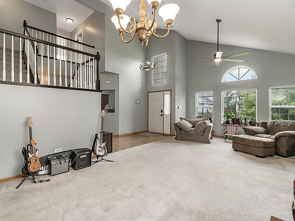 Enjoy serene living in Eagle Ridge on premier pond lot! This spacious two-story home offers 4 bedrooms, 2.1 bathrooms with beautiful views of the pond from multiple rooms. Cathedral ceilings and an open floor plan greet you from the front entry and lead you to combined eat-in kitchen with new stainless steel appliances and family room that offers hardwood floors, fireplace, and access to the fenced-in backyard. Updated paint colors throughout and new carpet on the second floor. Master bedroom has walk-in closet and master bath with double vanity sinks. 2nd bedroom has solid oak railings behind walls and can be converted back to loft if desired. Finished basement offers rec room, private office, additional storage room and new waterproof vinyl plank flooring. Seller purchased solar panels that stay with the house (please see brochure under Additional Information). Electric bill is never over $80 a month. Walking distance to Troy Middle School and WBO Jr High. Move-in ready condition and well-maintained!