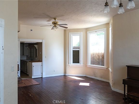 This is your opportunity to own a true Victorian home. There is so much here that is original: doors, door knobs, hinge plates, hardwood floors in living and dining rooms, door and window molding, banisters and staircase, high ceilings, wainscoting, built-in cabinetry and shelving. Add to that all of the modern improvements. In 2006 it had the following installed: complete electrical system, heating and air units, roof, dual paned windows throughout, pest clearance, and flooring in the bedrooms, kitchen and bathrooms. This home also has a charming front porch, formal entryway, and a large, fully enclosed yard. Unlike many Victorian homes, the bathrooms and closets are large and roomy. This home is in functioning, livable condition, it just needs some love to bring back to its full, original glory. Please be aware that the boards covering the windows are to protect them and to secure the property. Please be aware that the contract will have to be approved through the City of Oroville. This property is being sold as-is. Buyer to have any and all inspections they deem necessary.