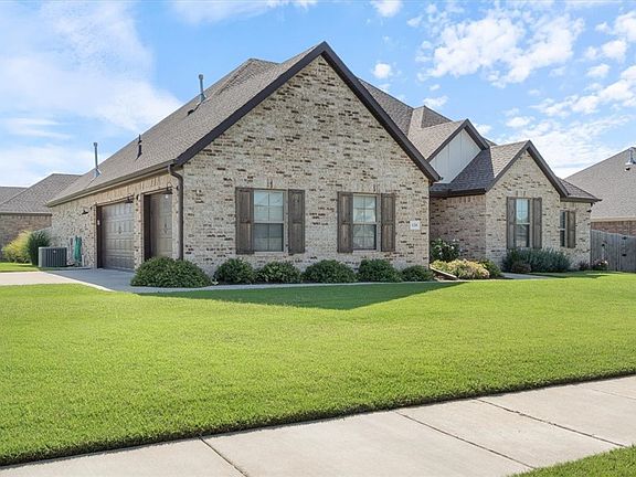 4 bedrooms or 5- what are your needs?? Two bedrooms on the main floor were professionally converted to one large room/suite; the wall can be added to revert back to a 5 bedroom home! This all-brick home checks all the boxes! Built in 2020 in the highly desirable South Pointe subdivision on a corner lot, this 4/3 home features open concept, granite counters, stunning cabinets, crown molding, tray ceilings, gas range, jacuzzi tub, gas fireplace with insert, extra attic insulation, large attic storage, and a 3 car garage with insulated doors. The third acre lot includes a covered back patio with a privacy wall, a flat yard with professional landscaping, and one single gate and one double gate to the backyard. Minutes from Arvest Ballpark, Tontitown Winery, and Arkansas Children's Hospital NW. South Pointe includes a community pool and two playgrounds. Refrigerator conveys. Some furniture is for sale.