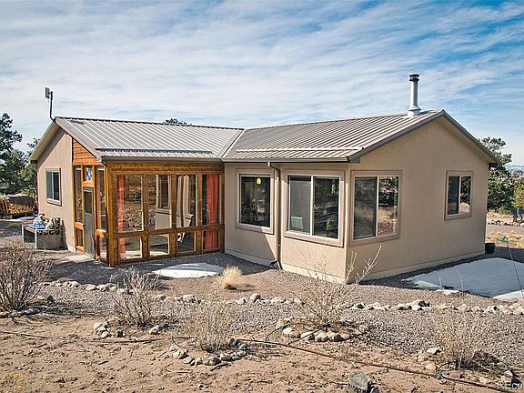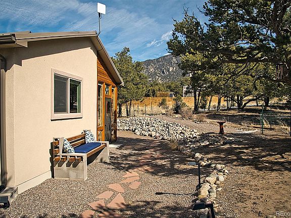 OVERSIZED ATTACHED GARAGE: boasts extra height and width to accommodate larger vehicles. The well-graveled driveway has space for an RV/trailer and/or additional cars. HIGH-END SUCCO EXTERIOR is crack and fire resistant. The entire home and garage have a metal roof and rain gutters with seasonal heaters. PARKS, GREENBELT TRAILS and spiritual centers are close by. An abundance of nearby hiking trails allow summiting the majority of Colorado’s 14er’s or a quiet stroll of Crestone’s 4 creeks. The town of Crestone is 5 minutes away with an art gallery, convenient shopping, and dining. The Great Sand Dunes National Park is close by too!