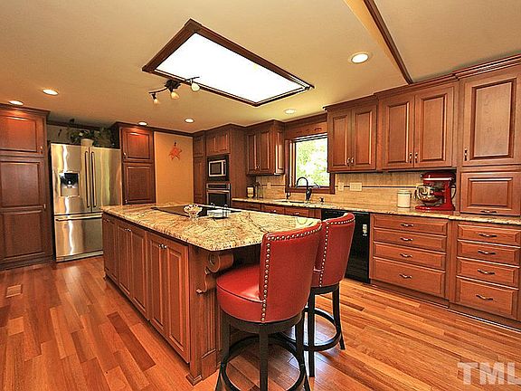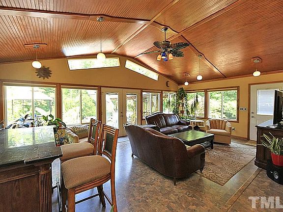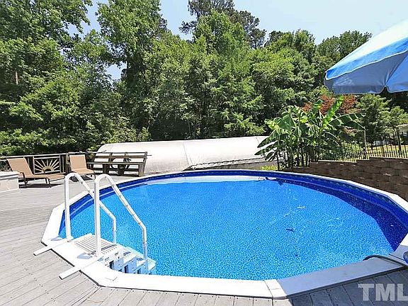 Vacation at home! Ranch in Cary/Raleigh area but with only county taxes! Pond front on 1.4 acres of privacy, no HOA. Remodeled kitchen with custom cabinets and soft close drawers, granite counter tops, SS appliances. Hardwood floors, trex decking. No HOA dues or restrictions. 1000 square foot greenhouse! Above ground pool surrounded by decking, looks inground. Garage/workshop is big enough for two cars but just has one car door + carport. Truly a must see!