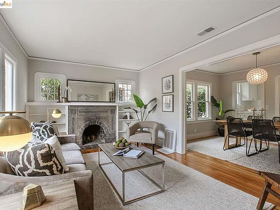 This charming 1924 Craftsman bungalow has all you need: good looks, a great location and a sweet yard - it's the perfect alternative to condo living. Set on a quiet, sunny street, the front yard is filled with color from the exuberant landscaping of bougainvillea, roses, salvia and succulents. The enclosed porch is a great spot to sit and enjoy the blooms. Inside, there is lots of natural light and vintage details. In the living room, a handsome fireplace has a unique design, and built-ins, classic hardwood floors and rounded moldings on the doorways highlight its Craftsman origins. The dining room has a useful built-in sideboard and cabinets, and a large window that brightens the space. The kitchen is open and cheerful, accented with quartz counters and subway tile, with a door to the back yard leading out to a brick patio. This garden has so much appeal - shaded by oak, magnolia and camellia trees. The two bedrooms have a vintage-style bathroom between them and tree-filled outlooks.