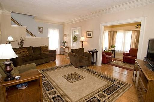 BE PREPARED TO FALL IN LOVE WITH THIS BEAUTIFULLY UPDATED HOME LOADED WITH CHARM & CHARACTER! GORGEOUS UPDATED KITCHEN W/CORIAN COUNTERS, TILE FLOOR, STAINLESS STEEL APPLIANCES, & RECESSED LIGHTING. LARGE LIVING RM W/BEAUTIFUL WOODBURNING FIREPLACE & HUGE DINING RM BOTH W/STUNNING CROWN MOLDING! SUN ROOM OFF LR IS PERFECT FOR RELAXING! COMPLETELY REDONE UPSTAIRS BATH W/NEW VANITY, TILE SHOWER & FLOOR, & LIGHTING. UPDATED HALF BATH ON MAIN LEVEL. G REAT DECK, 2-CAR GARAGE PLUS 2 PARKING SPOTS. FURNACE '01, CENT/AIR '03, ROOF '09. ALL NEW WINDOWS T/O! CLEAN BASEMENT SUITABLE FOR FINISHING.