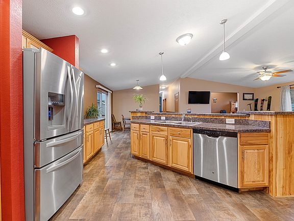 Very nice, newer manufactured home on a rented lot in Mountain Shadow Estates in Spearfish including 3 bedrooms, 2 bathrooms, an open concept kitchen/dining/living room with a vaulted ceiling. This home has so many upgraded features and a very desirable layout. The mudroom at the front of the home has a built-in bench with coat hooks, a utility sink, and a washer/dryer. The master bedroom has a walk-in closet, and an oversized shower tub combination. The kitchen has a large island and plenty of beautiful hickory cabinets along with upgraded appliances including a gas stove. There is also a large deck for outdoor entertaining and great storage in the outdoor garden shed that is included. Mountain Shadows Estates requires applicants to meet with the park manager and must be approved. Park rules state no dogs are allowed. The lot rent is $250 per month. For park questions call Shelly at (605)641-8022.Buyer is responsible for verifying all information on this MLS document.