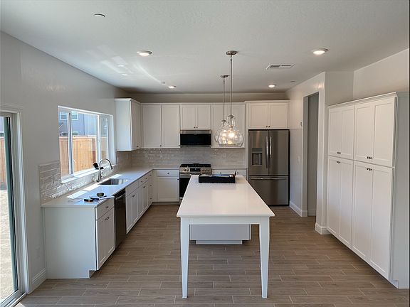 Step into Clovis' best neighborhood with this brand-new community and move into a pristine, energy-efficient 4 Bed/2.5 Bath home. This north-facing gem features a spacious floor plan and modern amenities, including a tankless water heater, solar panels and all brand new appliances. On the ground floor, you'll find a versatile flex room, a large family room, and a kitchen that boasts a deep farm sink and ample cabinetry. The home's downstairs has tiled flooring, while the upstairs is carpeted. Enjoy stainless steel appliances such as a washer/dryer, refrigerator, gas stove, built-in microwave, and dishwasher. Sunlight pours through large windows and a sliding glass door, ensuring plenty of natural light. For convenience, there's a half bathroom on the lower level. The upstairs houses a master bedroom with a large closet fitted with built-in shelves and an en-suite bathroom with dual sinks and a shower. Three additional bedrooms and a second bathroom are upstairs. The bedroom can easily double-up to be your home office. The upstairs laundry room comes equipped with a washer and dryer and ample storage shelves. Outside, the home features a 2-car attached garage and a large fenced backyard with low-maintenance landscaping, complete with irrigation and drip systems. Your kids will be in the award-winning Clovis school district with top-tier schools of Clovis. Tenants are responsible for PG&E gas and electric, PG&E Tru Up, Clovis utilities (Water, Trash) and $160 solar lease charges. Solar lease charge would be paid to the owner. Small pets are allowed with an additional $550 deposit. The home is non-smoking, requires a credit score above 650, and renter's insurance is mandatory. Enjoy low utility bills thanks to the solar-based electric generation. No smoking at home.