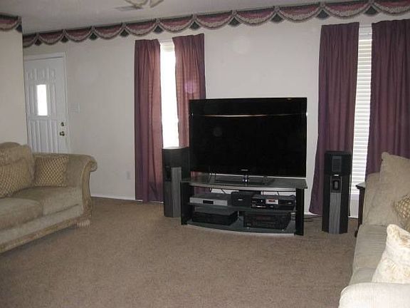 Beautiful Front Porch! This 3 bedroom, 2 bathroom home is move in ready. 1332 square feet of living space. Very secluded property with all the city amenities on .74 acres. Maintenance free exterior. In 2009 the seller had a larger and an energy efficient complete new heat and air system installed.