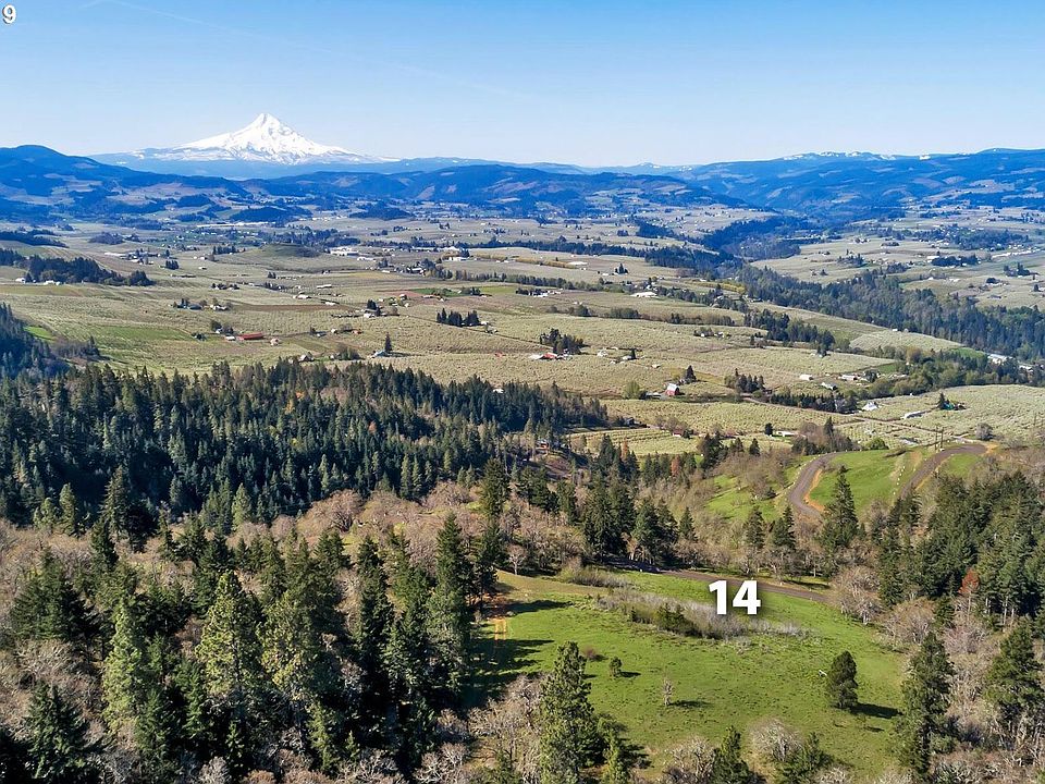 Lot 14: 2.02ac. Great opportunity to build on a fairly flat with a Mount Hood view. Pine Crest offers panoramic views of Mt Hood & Hood River Valley. 84 acres w/40% dedicated to green space w/roads, all utilities including Natural Gas, Power, Water, flexible 6k sqft building envelope on each lot. Under an hour to PDX International, and downtown Portland! Wineries, breweries, art, water& snow sports at your feet.