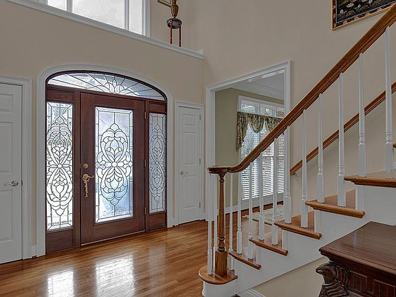 Stunning 5 bedroom, 4.5 bath custom home with hardwood flooring, huge kitchen with space for entertaining, sunroom, main level and lower level garages, fenced flat yard, plus a complete in-law suite! Circular drive leads to the 2 story entry with study to the left and formal dining to the right, large great room with gas fireplace and french doors to the deck leads to the huge kitchen with double ovens, island with prep sink, panty, and french doors to the sunroom. Master suite features domed trey ceilings, his and hers walkins, separate vanities, soaking tub and shower. Main level is completed by 2 car garage, huge laundry room with sink and cabinet storage, and half bath. Split staircase leads to 3 bedrooms, one with private bath and huge bonus area with wet bar, two with jack-n-jill bath. Lower level is complete in-law suite with full kitchen/dining room, den with fireplace, bedroom, full bath, patio, and 2 car garage. One owner, well maintained and ready for a new family!