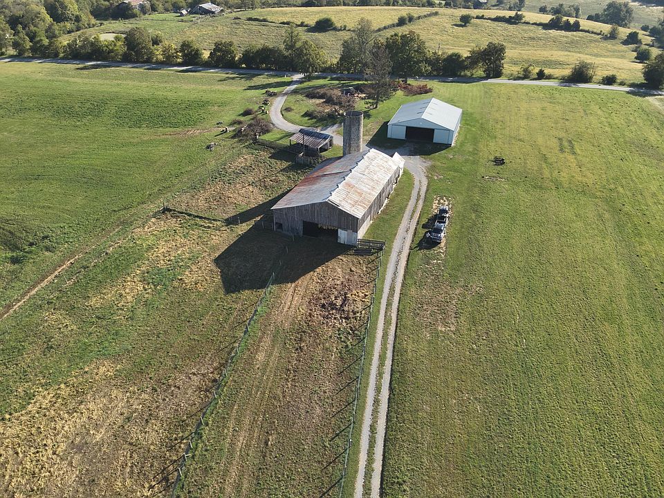 Prime Farmland with 103.44 Rolling acres, a 60x55 Barn, a 60x85 Barn, and a 40x45 Metal building with sliding front doors. This farm is 80% tillable crop ground.
